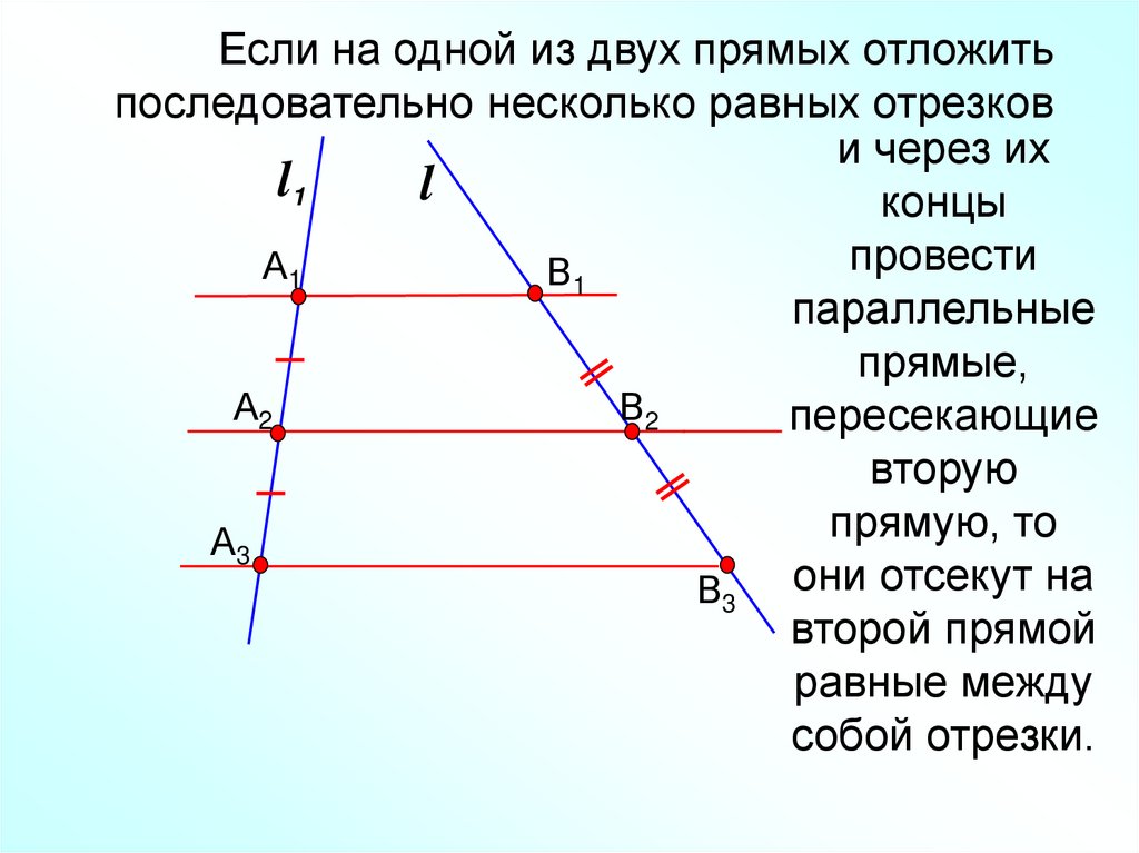 Если на одной из двух прямых отложитьпоследовательно несколько равных отрезков