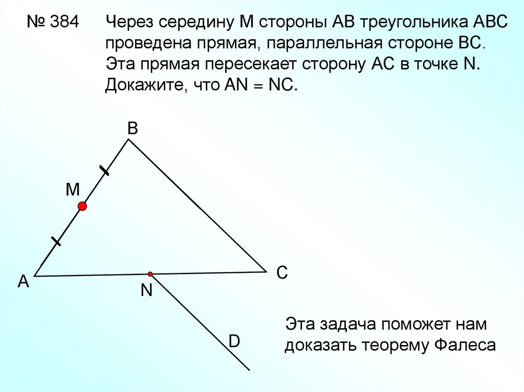 № 384Через середину М стороны АВ треугольника АВС