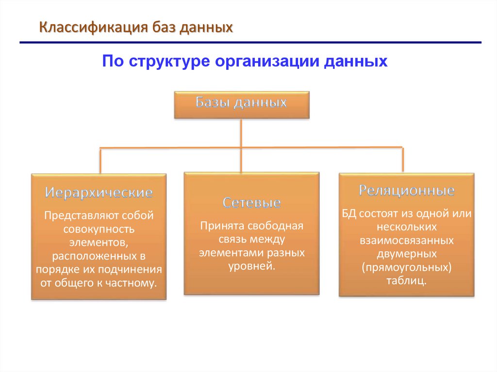 Классификация баз данныхПо структуре организации данных