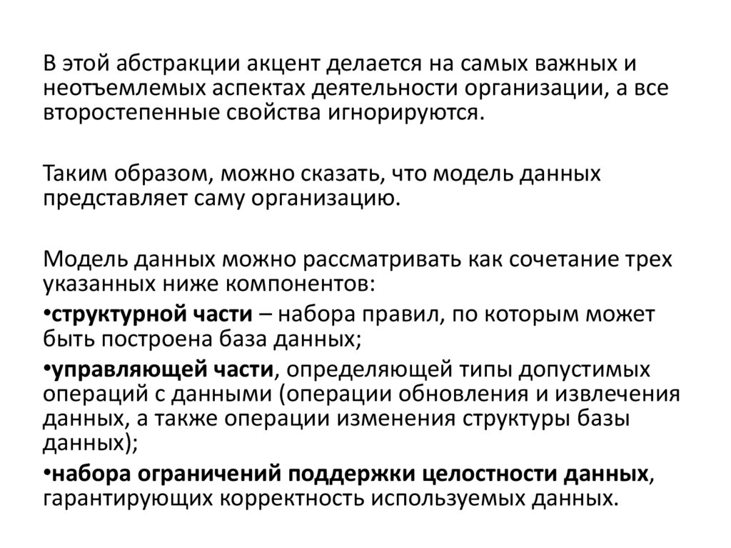 Модель данных можно рассматривать как сочетание трех