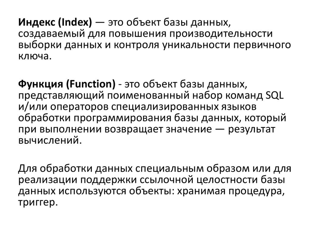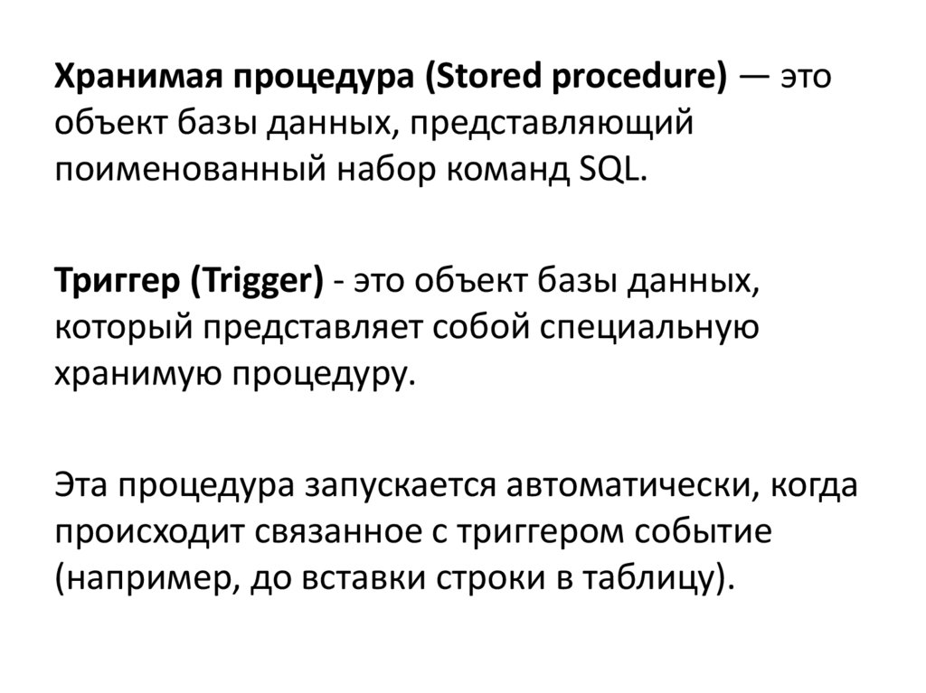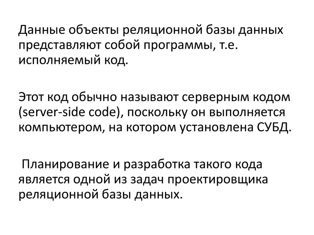 Данные объекты реляционной базы данныхпредставляют собой программы, т.е.