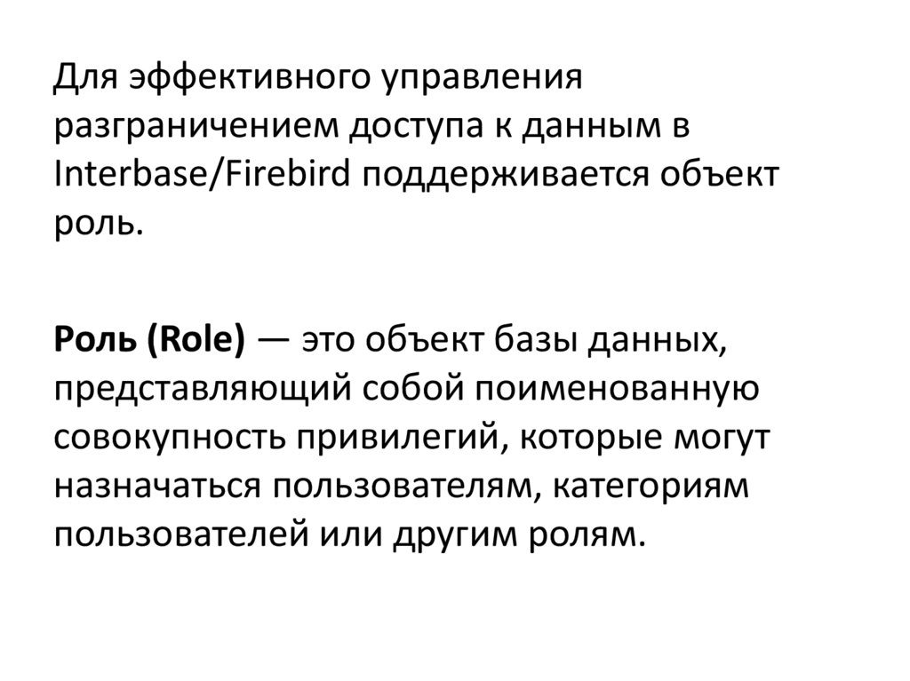 Роль (Role) — это объект базы данных,