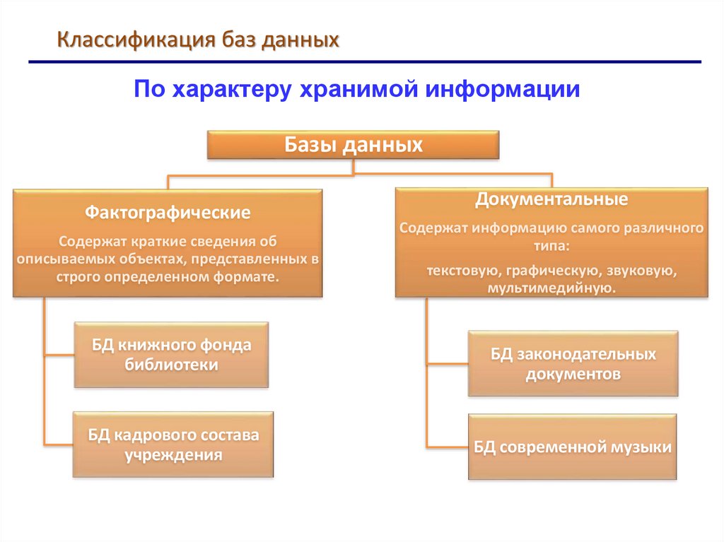 Классификация баз данныхПо характеру хранимой информации