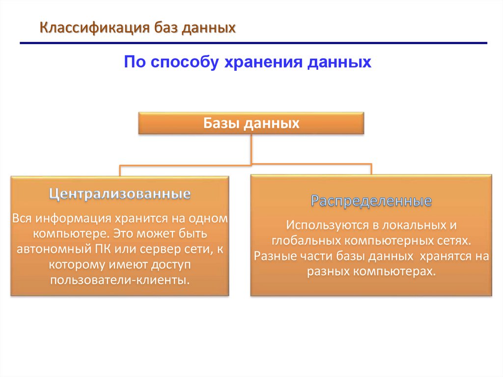 Классификация баз данныхПо способу хранения данных