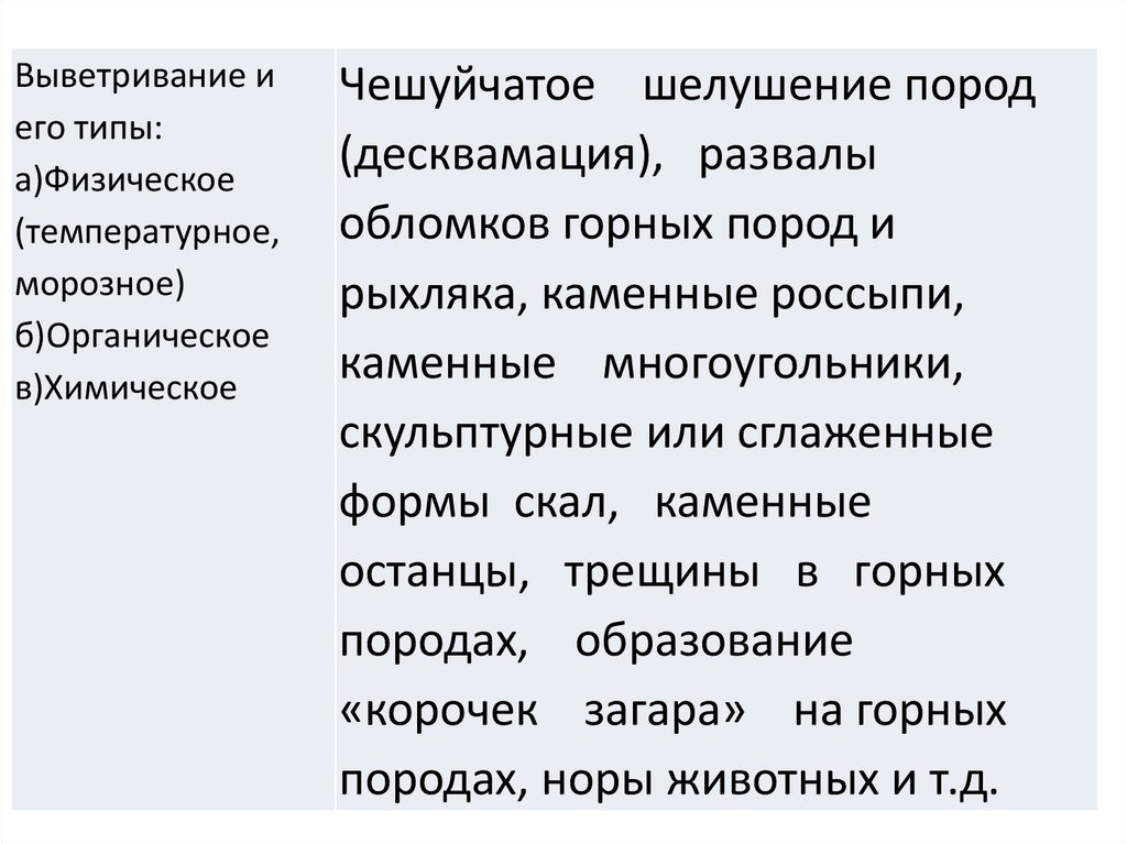 • Выветривание (нем. «vetter» - погода) процессы физического разрушения ихимического разложения минералов и
