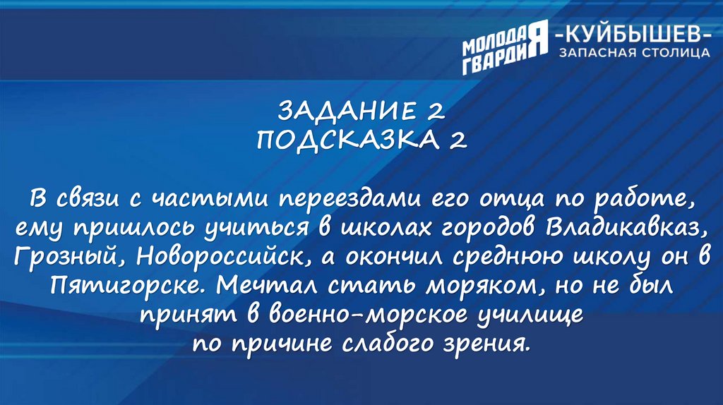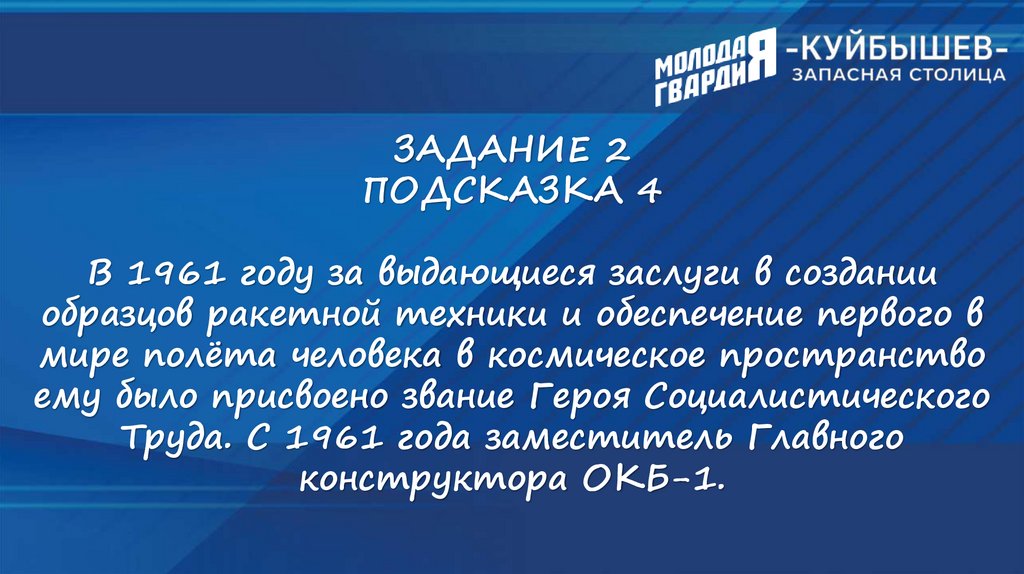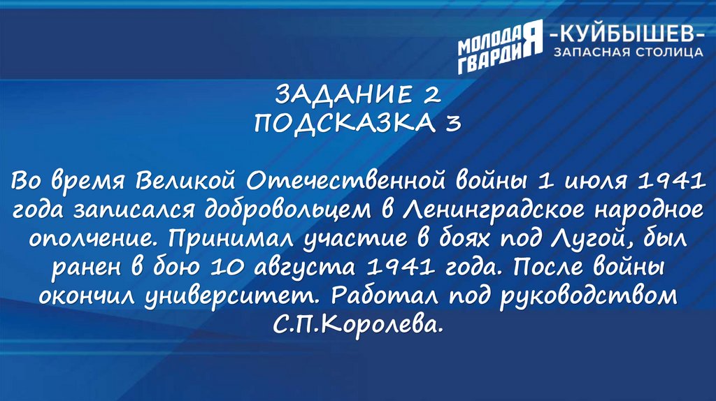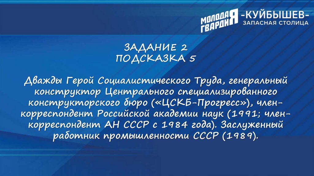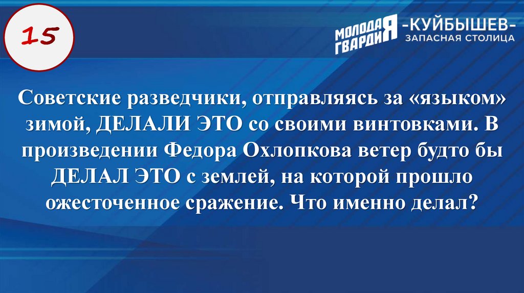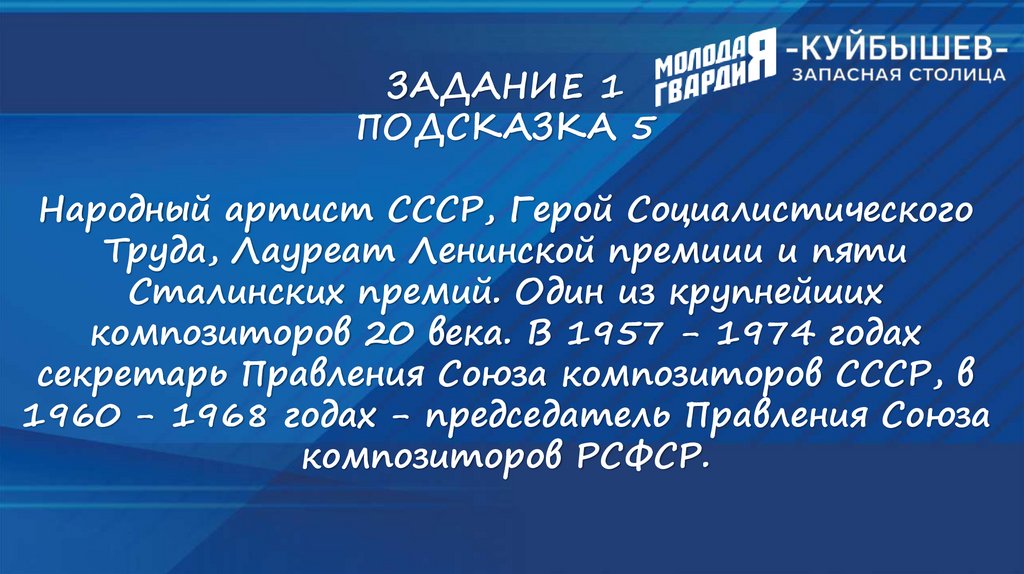 ИНТЕЛЛЕКТУАЛЬНЫЙ ТУРНИР«КУЙБЫШЕВ - ЗАПАСНАЯ СТОЛИЦА»