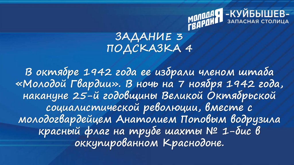 «Молодой Гвардии». В ночь на 7 ноября 1942 года,