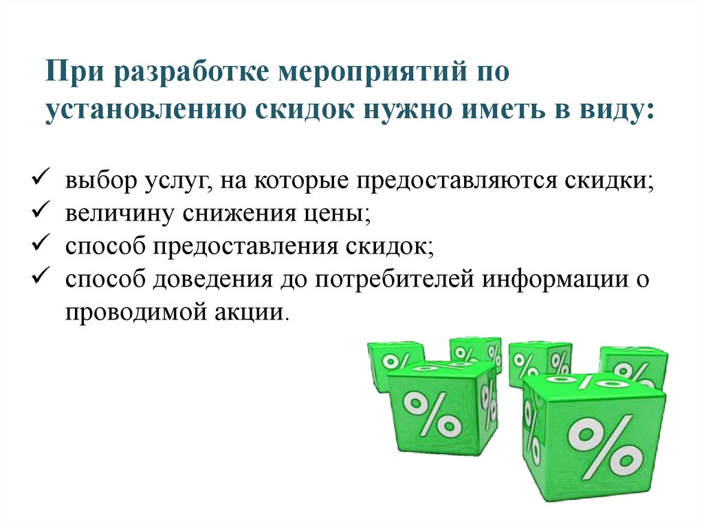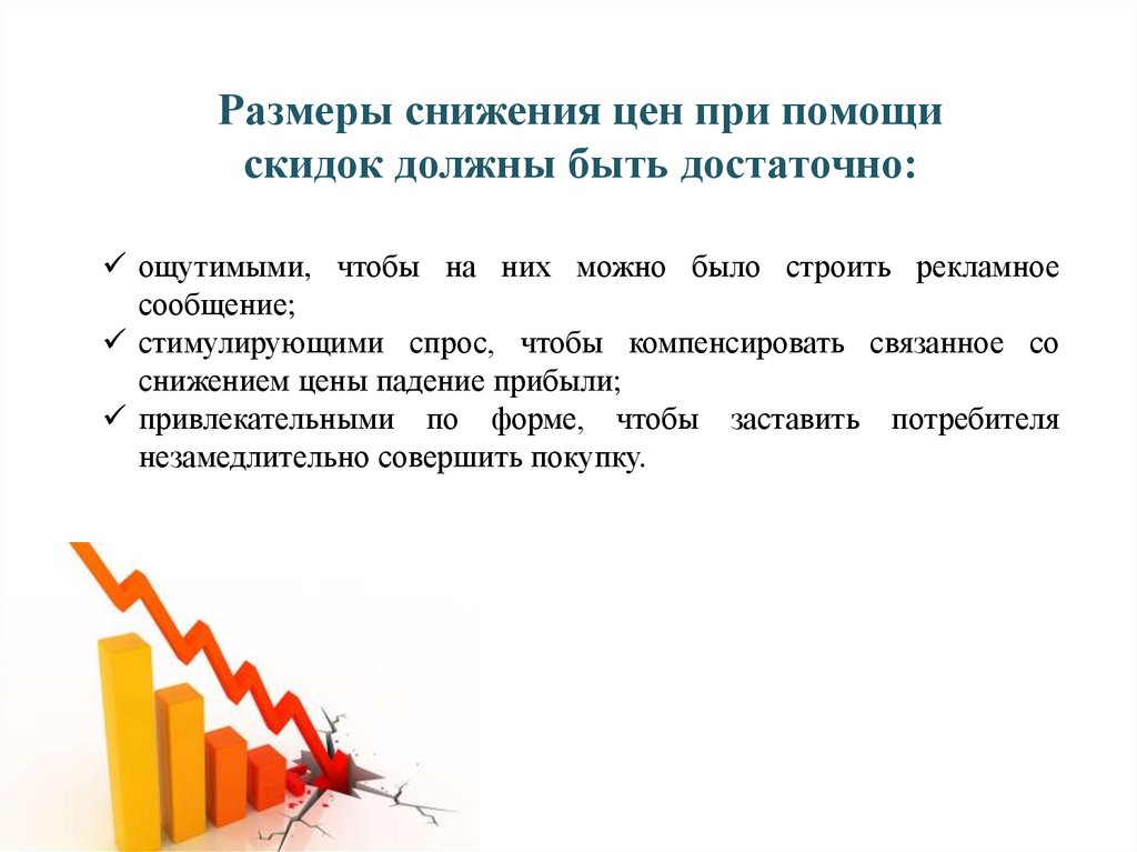 Размеры снижения цен при помощискидок должны быть достаточно: