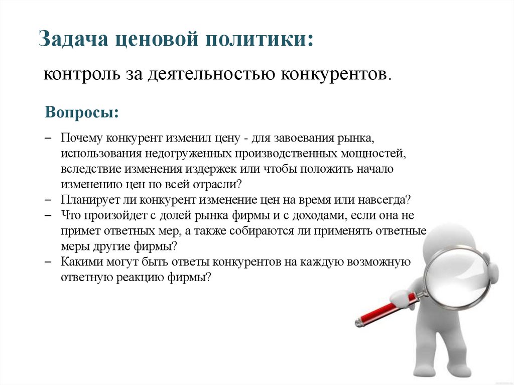 Задача ценовой политики:контроль за деятельностью конкурентов.
