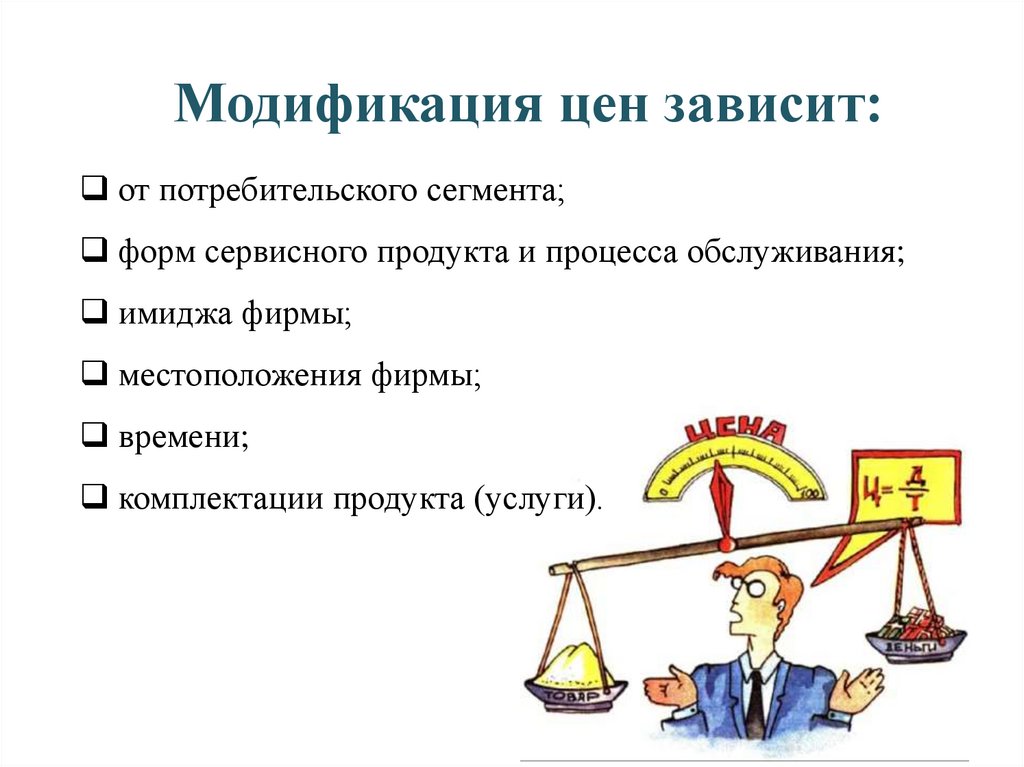 Модификация цен зависит:от потребительского сегмента;