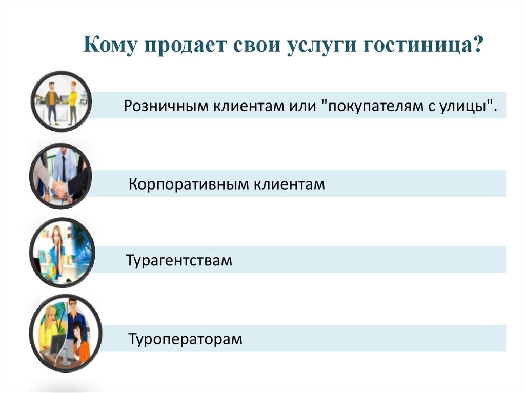 Кому продает свои услуги гостиница?1.