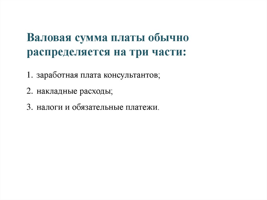 Валовая сумма платы обычнораспределяется на три части: