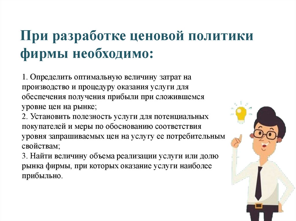 При разработке ценовой политикифирмы необходимо: