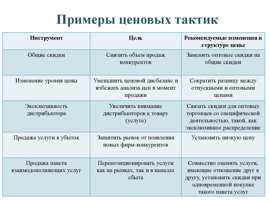Примеры ценовых тактикИнструмент