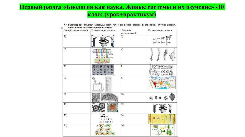Первый раздел «Биология как наука. Живые системы и их изучение» -10класс (урок+практикум)