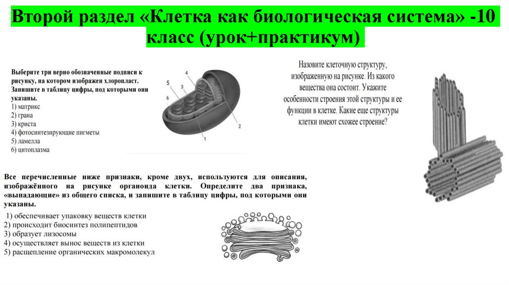 Второй раздел «Клетка как биологическая система» -10класс (урок+практикум)