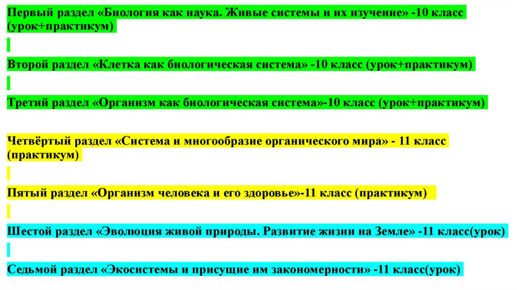 Третий раздел «Организм как биологическая система»-10 класс (урок+практикум)