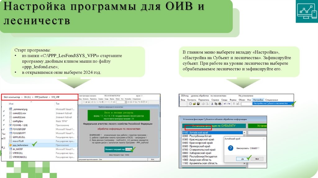 «Настройка на Субъект и лесничества». Зафиксируйте