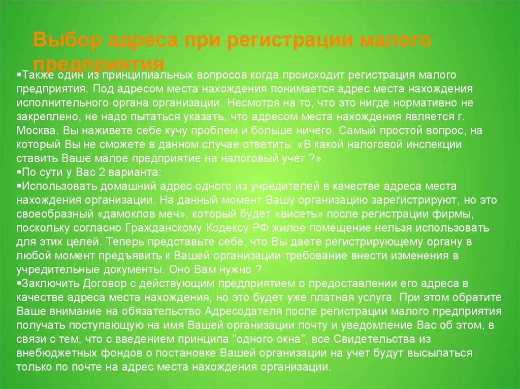 качестве адреса места нахождения, но это будет уже платная услуга. При этом обратите