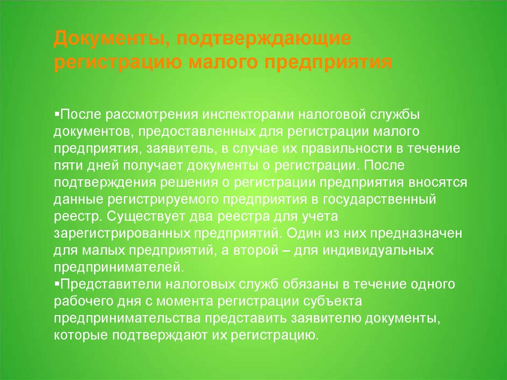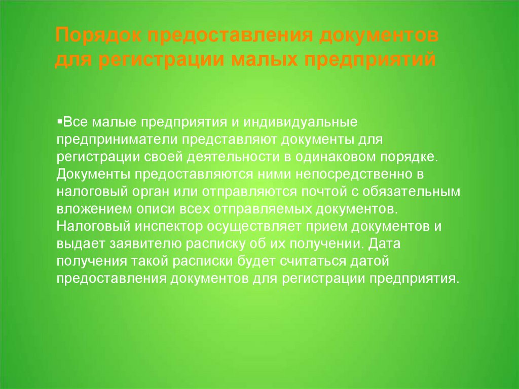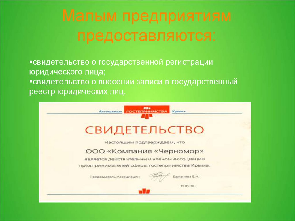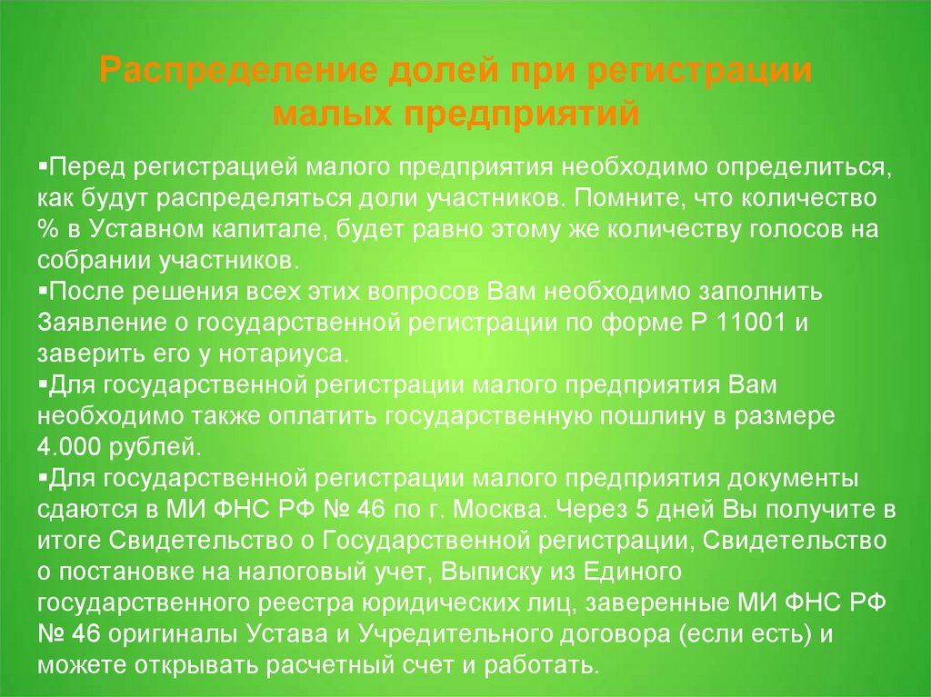 Также один из принципиальных вопросов когда происходит регистрация малого
