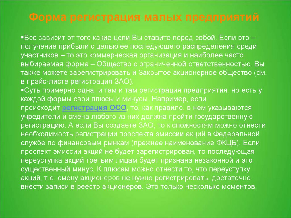 Форма регистрация малых предприятийВсе зависит от того какие цели Вы ставите перед собой. Если это –