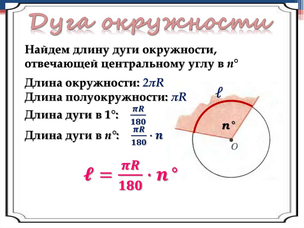 Найдем длину дуги окружности,отвечающей центральному углу в n°