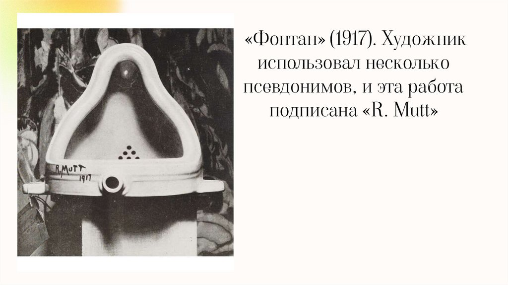 искусства, например, "Фонтан" Марселя Дюшана) стал символом дадаистского бунта против