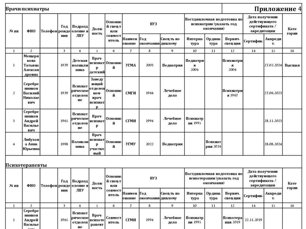 4. Число освидетельствований, проведенных врачами - психиатрами за 2024 год