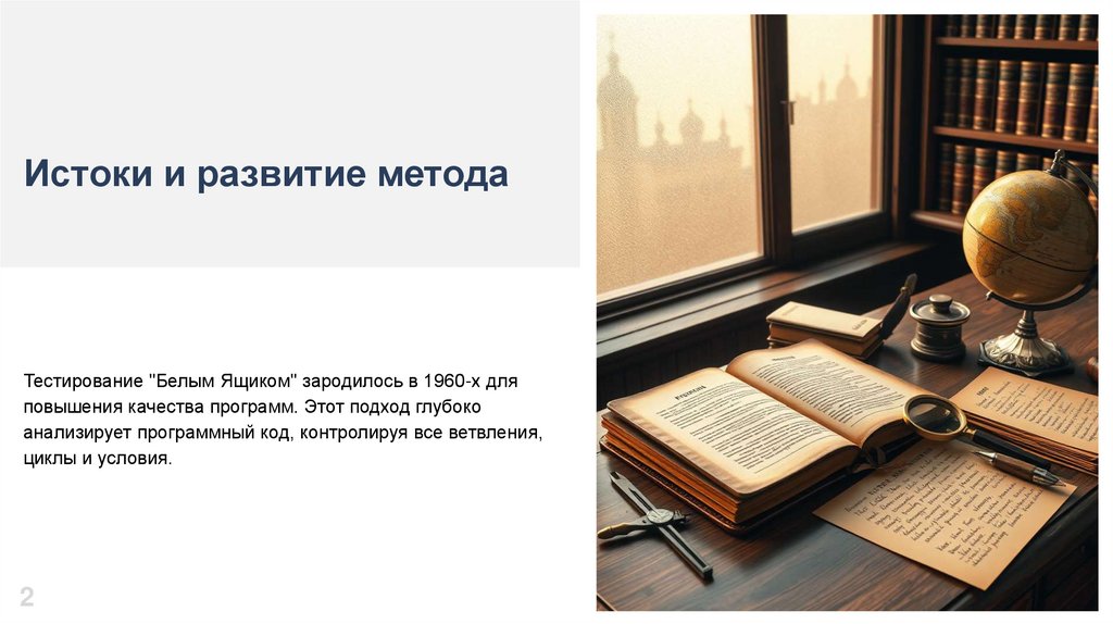 Истоки и развитие методаТестирование "Белым Ящиком" зародилось в 1960-х для