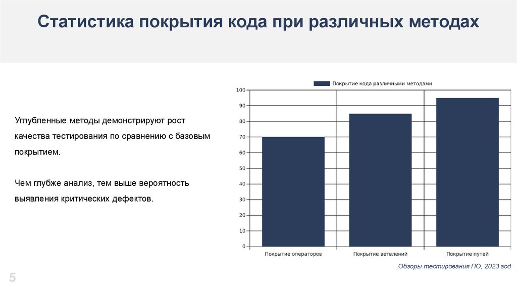 Статистика покрытия кода при различных методахУглубленные методы демонстрируют рост