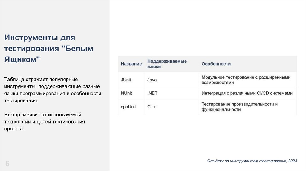 Инструменты длятестирования "Белым