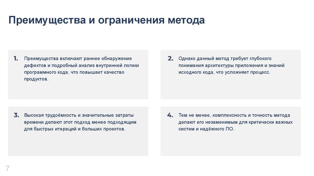 Преимущества и ограничения метода7