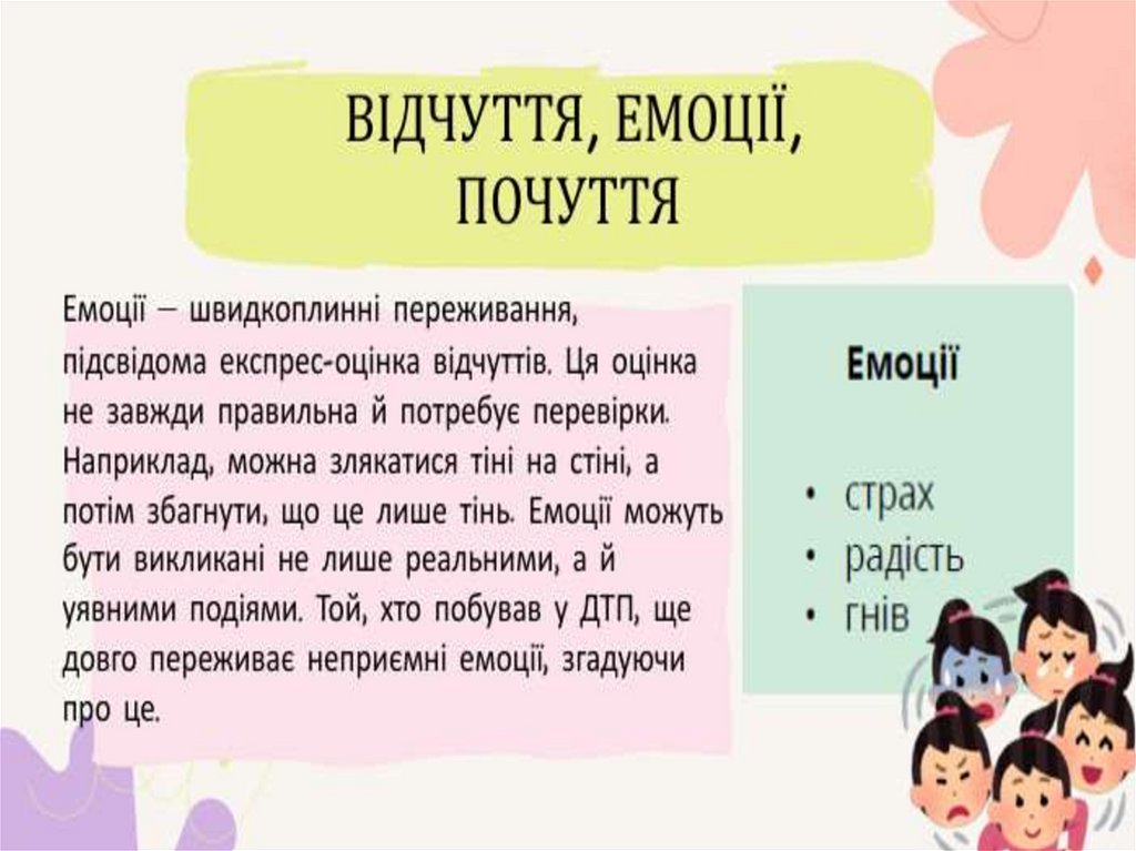 Назвіть відчуття, емоції та почуття різної інтенсивності (наприклад, тепло—спека; тривога—страх—паніка;