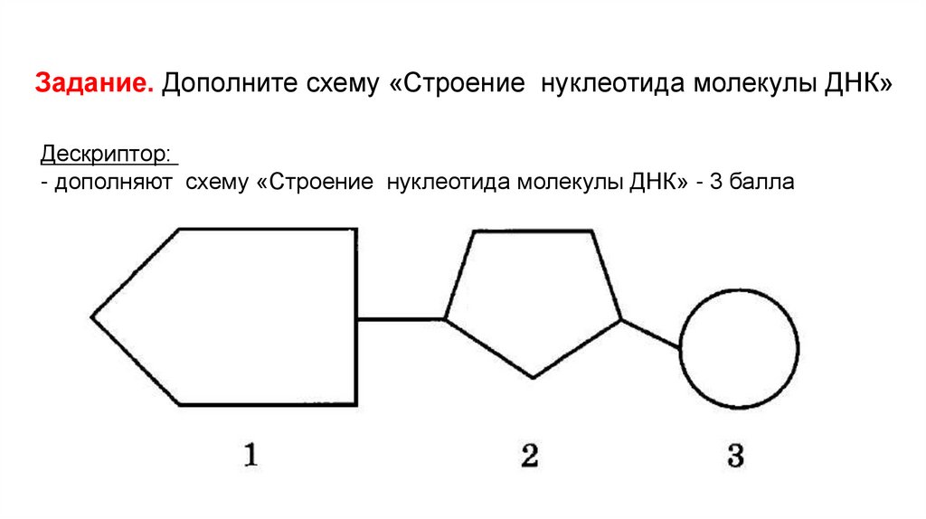 - дополняют схему «Строение нуклеотида молекулы ДНК» - 3 балла