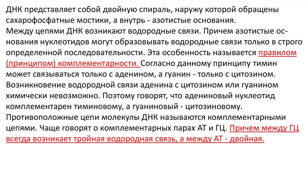 цепями. Чаще говорят о комплементарных парах АТ и ГЦ. Причем между ГЦ