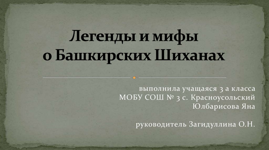 1. Легенды и мифы о Башкирских Шиханах