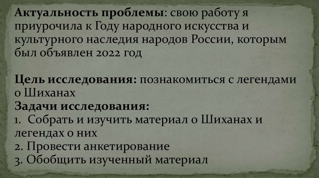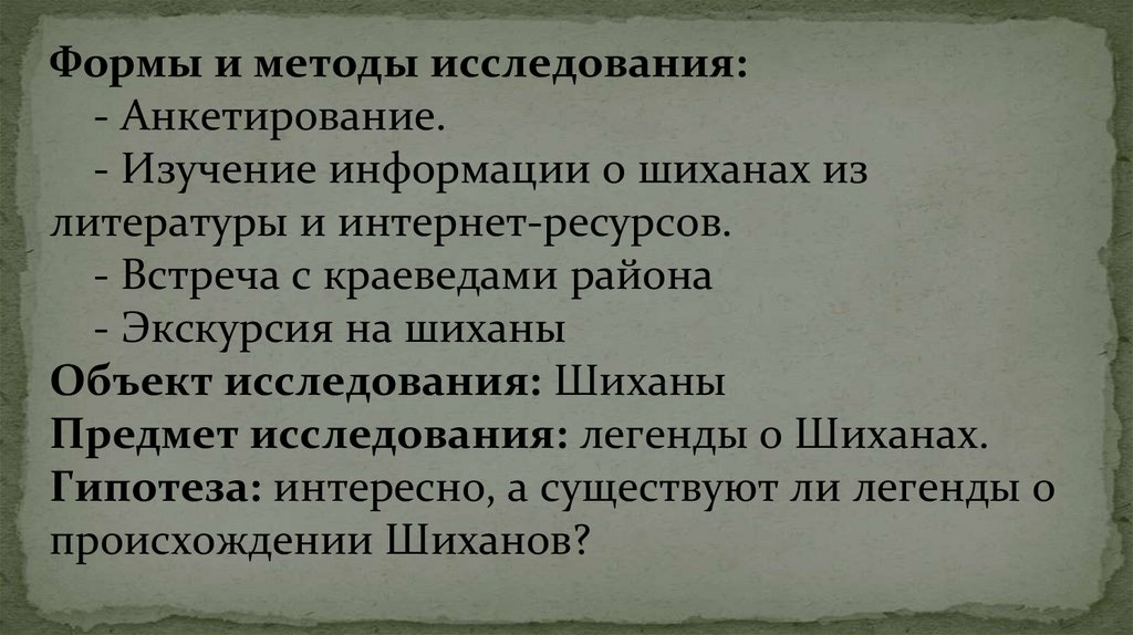 Предмет исследования: легенды о Шиханах.
