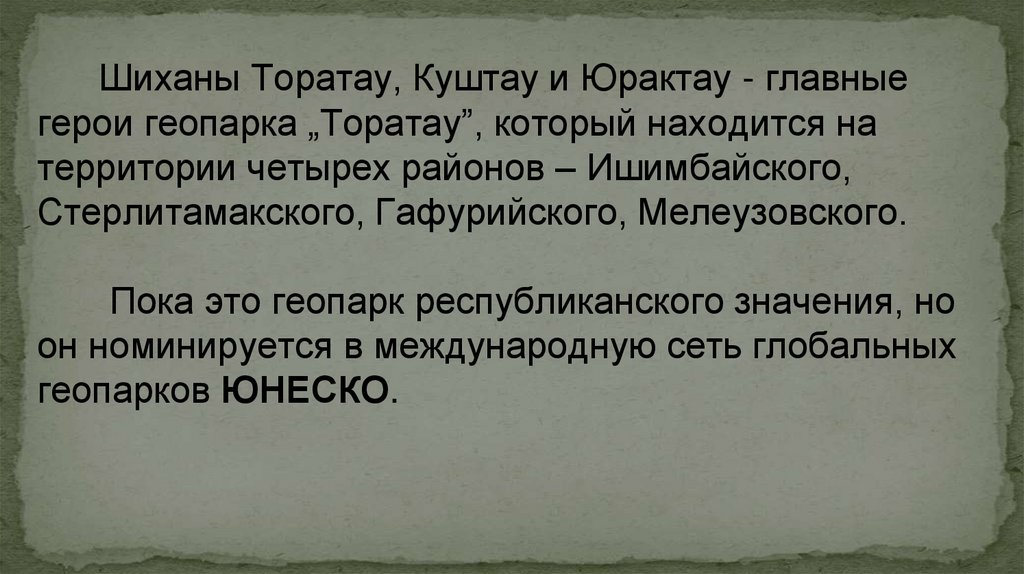 Пока это геопарк республиканского значения, но