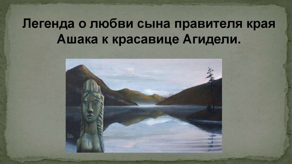 Легенда о любви сына правителя краяАшака к красавице Агидели.