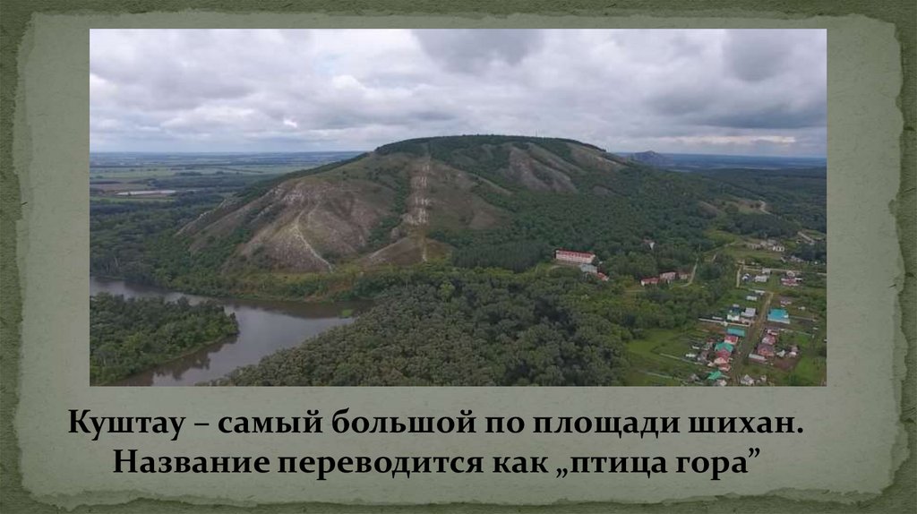 Куштау – самый большой по площади шихан.Название переводится как „птица гора”