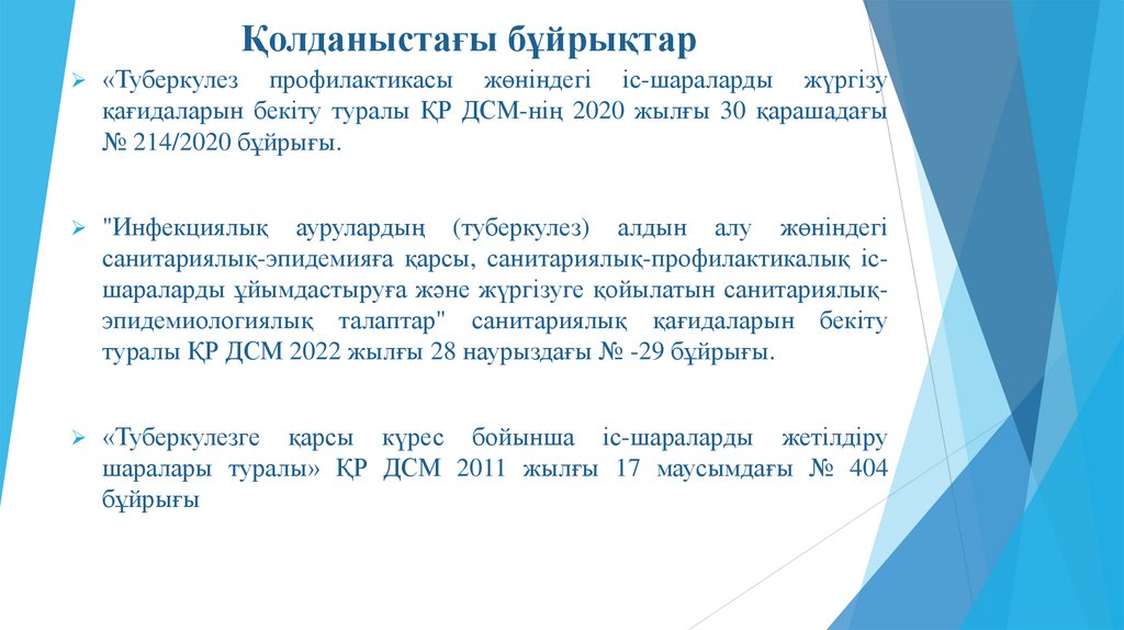 Қолданыстағы бұйрықтар«Туберкулез профилактикасы жөніндегі іс-шараларды жүргізу