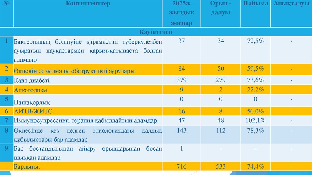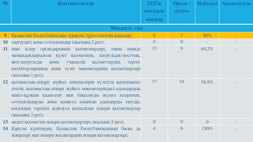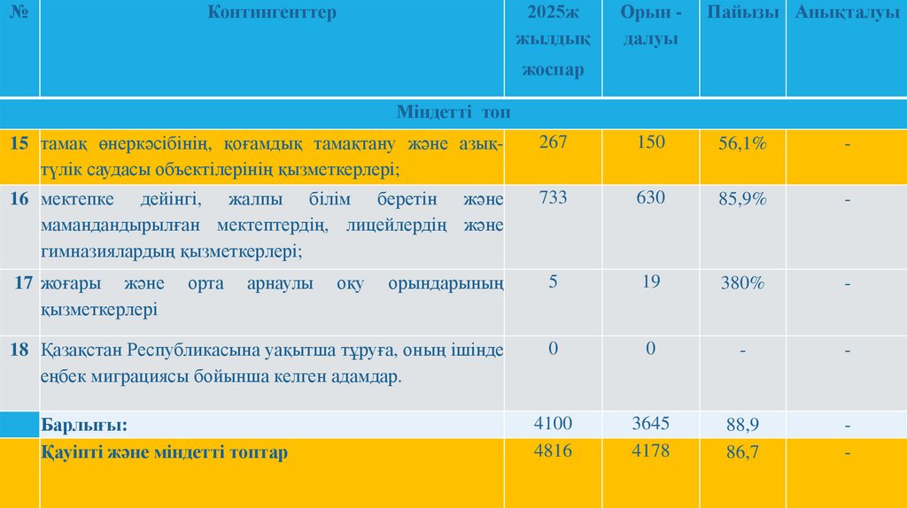 орындалмауы, сонымен қатар жоспарланған контингенттер жылдан жылға қалып