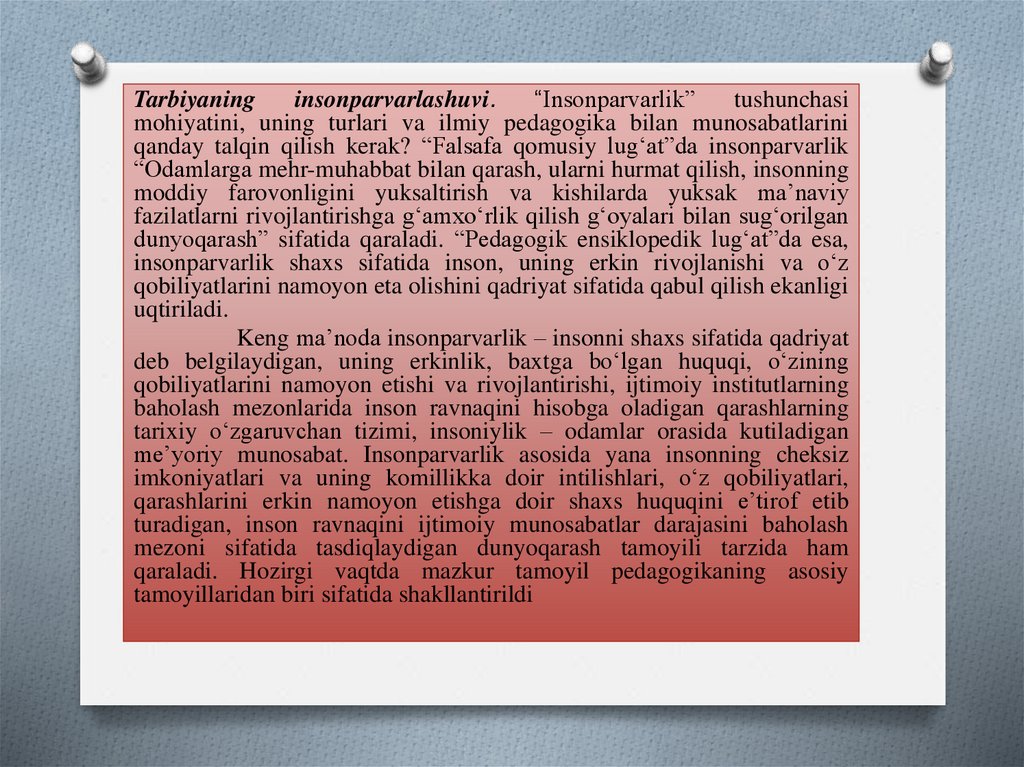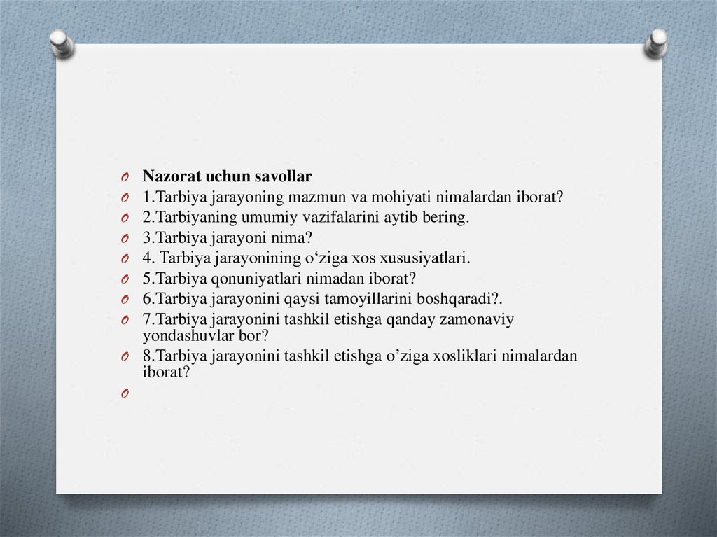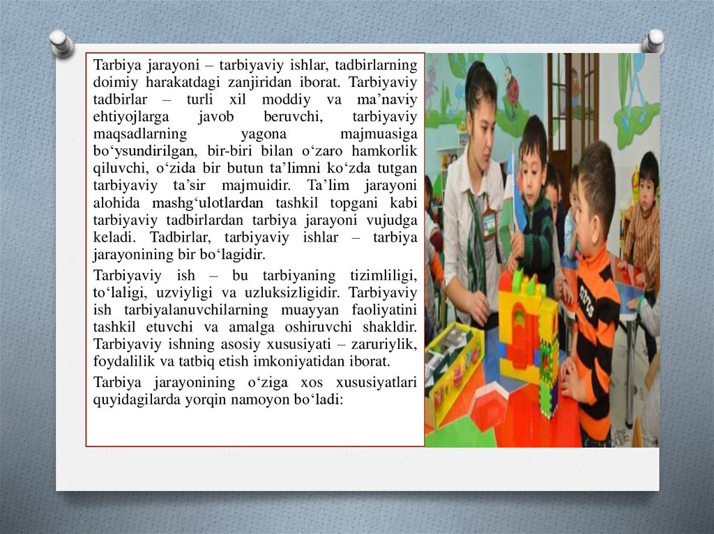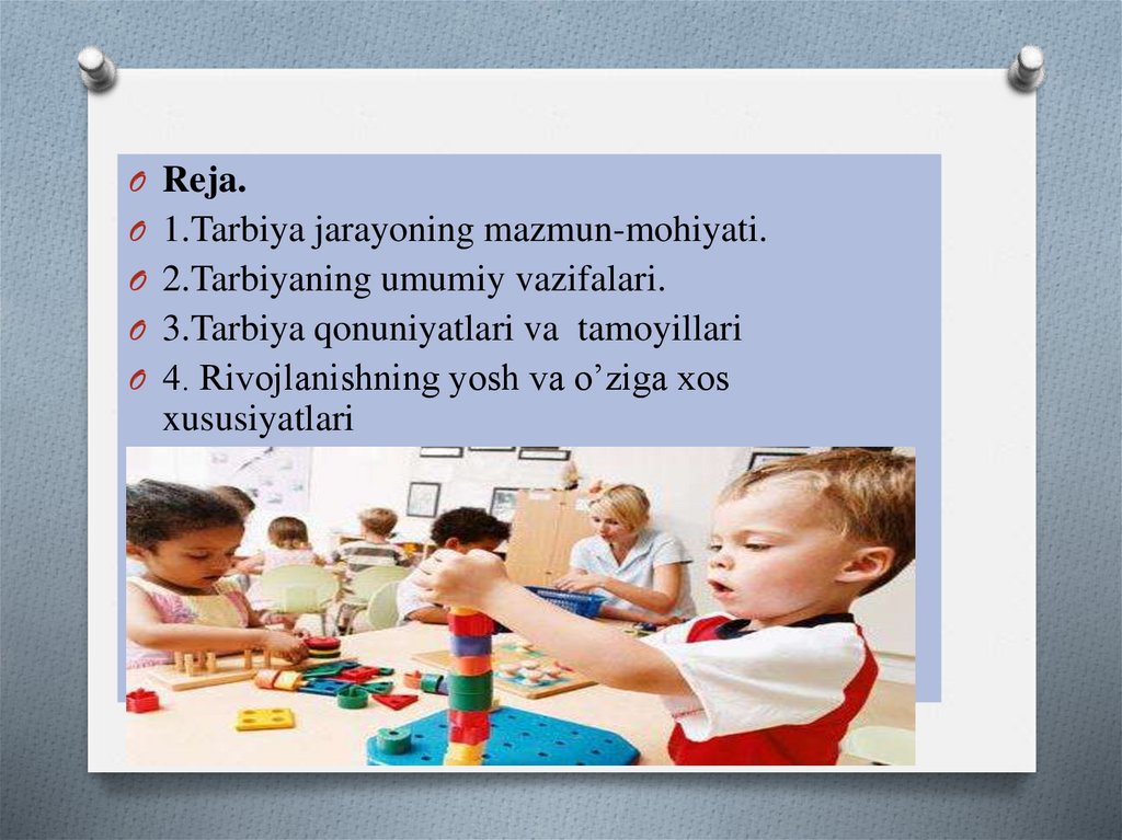 O Reja.O 1.Tarbiya jarayoning mazmun-mohiyati.
