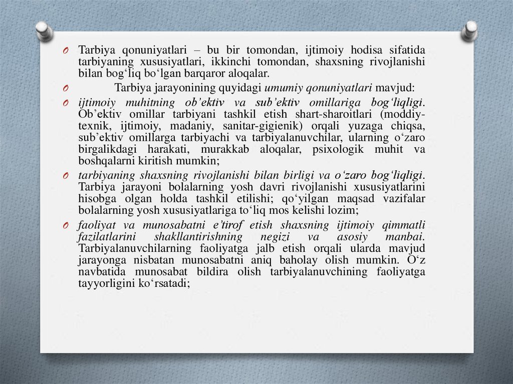 O 3.Tarbiya qonuniyatlari va tamoyillari