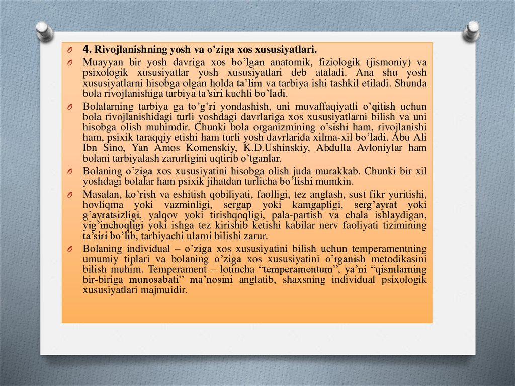 4. Rivojlanishning yosh va o’ziga xos xususiyatlari.