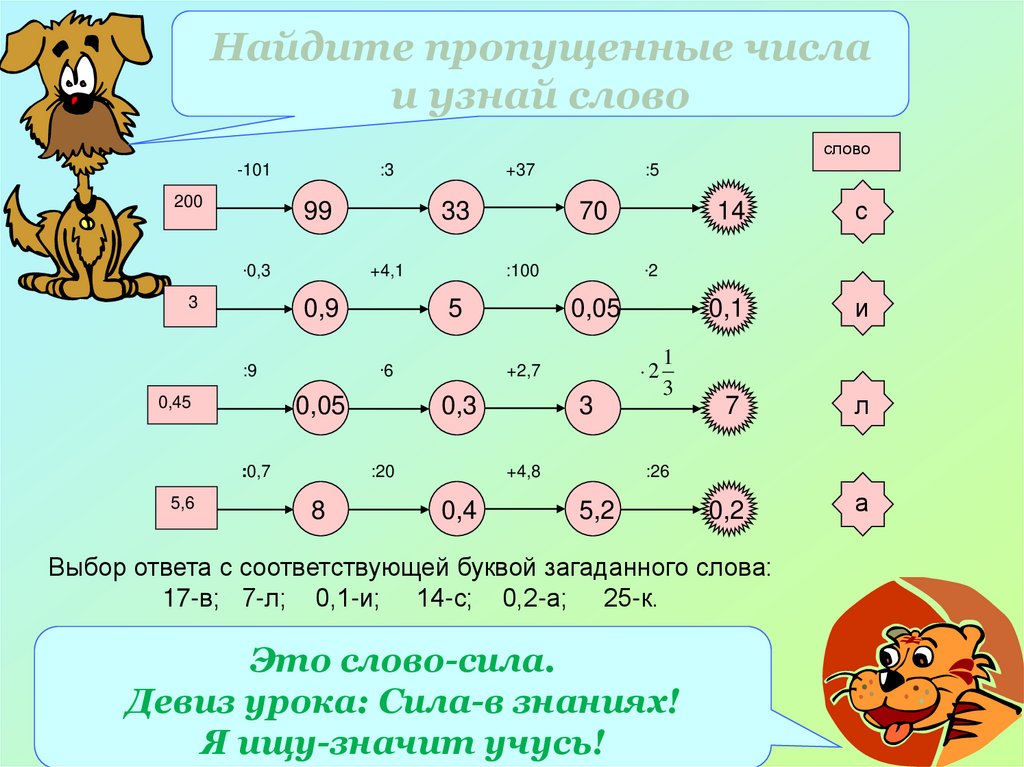 Найдите пропущенные числаи узнай слово