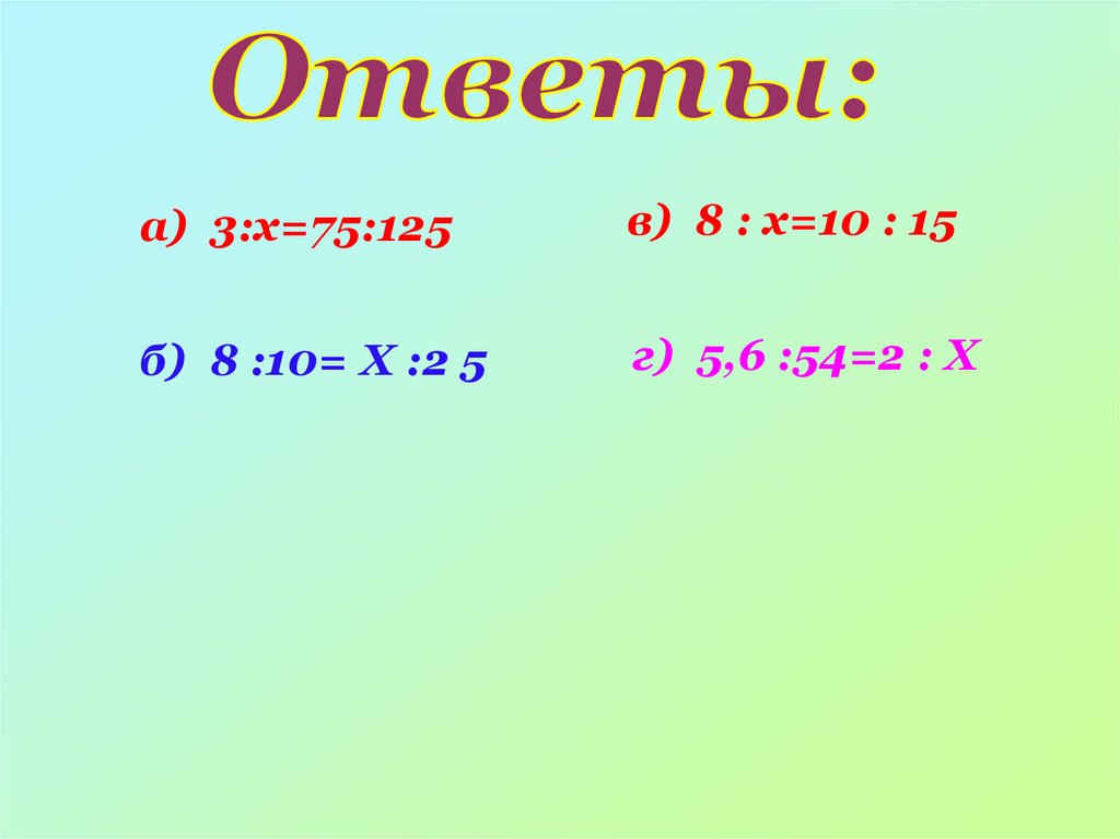 а) 3:х=75:125в) 8 : х=10 : 15