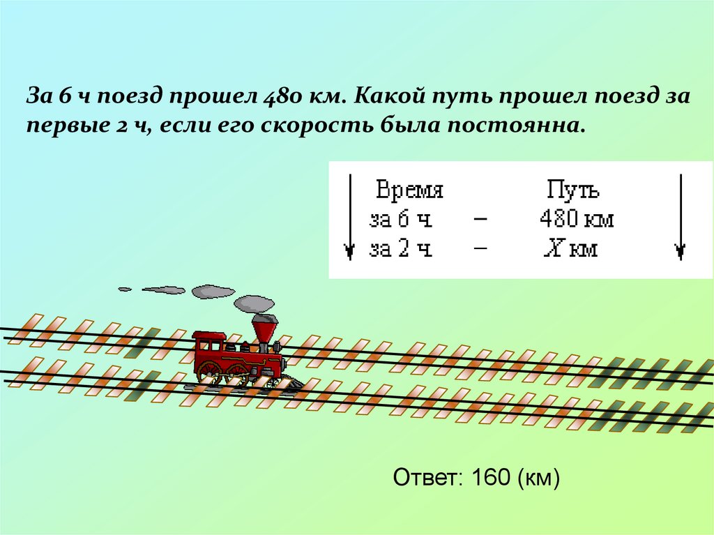 За 6 ч поезд прошел 480 км. Какой путь прошел поезд запервые 2 ч, если его скорость была постоянна.