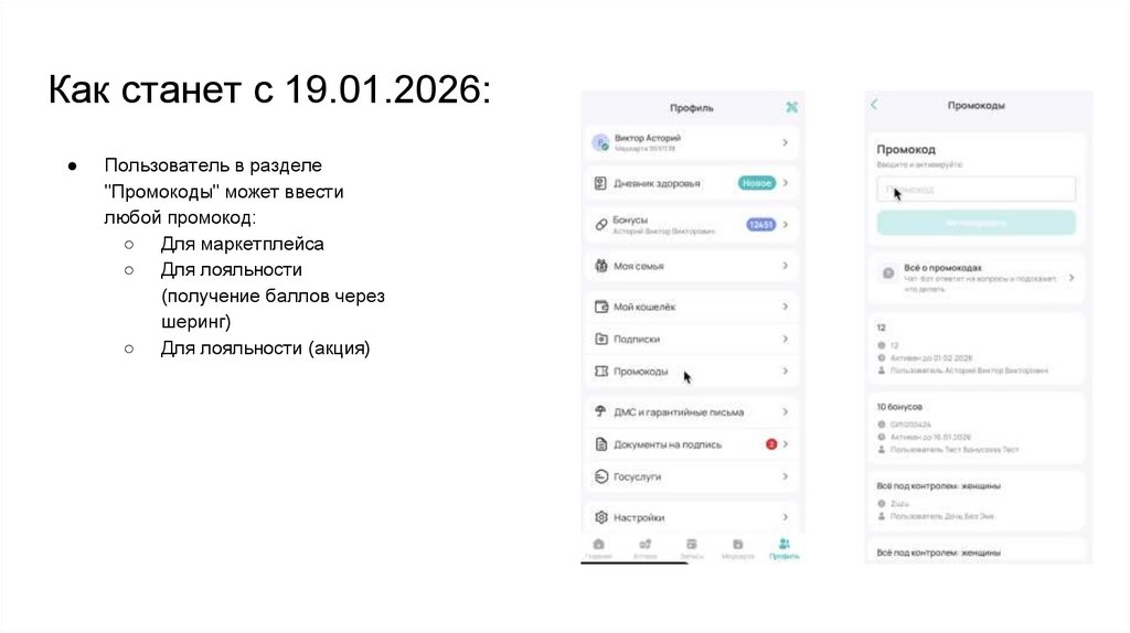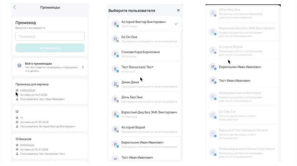 Что изменилось в разделе:Пользователь может просмотреть историю применения промокодов: