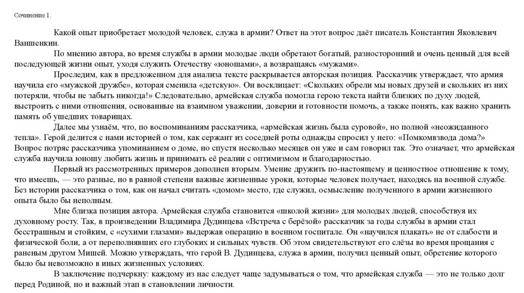Сочинение 1.Какой опыт приобретает молодой человек, служа в армии? Ответ на этот вопрос даёт писатель Константин Яковлевич